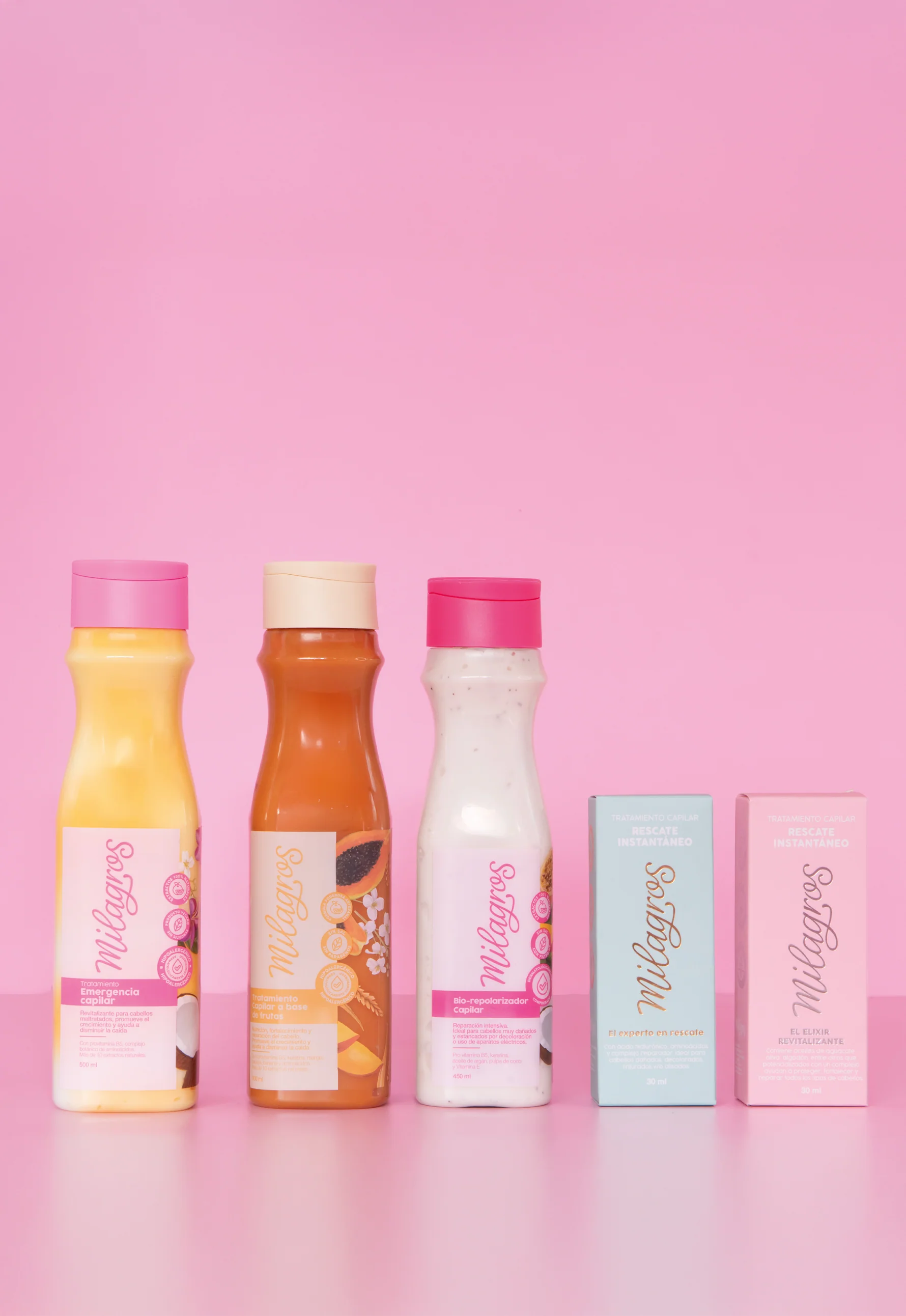 La línea completa de rescate instantáneo: el elixir revitalizante y el experto en rescate, con tecnología de reparación capilar y resultados inmediatos. El biorepolarizador capilar con provitamina b5, pulpa de coco y vitamina E. El tratamiento emergencia capilar que revitaliza el cabello y el histórico tratamiento de frutas el cuál es una fórmula artesanal que contiene extractos de papaya, miel, banano, entre otros ingredientes que ayudan a nutrir el cabello, siendo un cóctel de vitaminas.